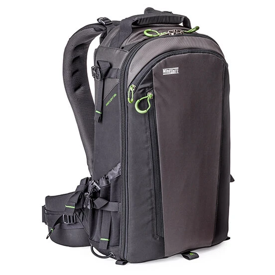 An excellent design with loads of features – the Mindshift FirstLight 30L! This camera backpack is perfectly tailored to all you outdoorsy photographers out there. Its carrying system with an aluminium torso stay and venting Airmesh padding are extremely comfortable and distribute the load perfectly. Plus, you’ll be happy to know that the bag is equipped with an 11-point adjustable torso harness. As for the material, Mindshift used tough nylon with a DWR treatment. If you happen to get caught in a rainstorm, the rain cover, which is included, will keep the contents of the bag nice and dry.The 30-litre main compartment is equipped with removable, high-density dividers, the position of which you can change according to the contents. That way, you’ll be able to carry telephoto lenses, traditional photo gear and other personal belongings. Small items can be stored in the plethora of inside or side pockets, all of which are very easily accessible. The bag even accommodates a hydration system with its 3L hydration pocket!Photographers will love the tripod mounting system. Plus, you can us the waist belt to carry additional gear. An excellent design that will provide you with the comfort you need for long photography trips – the Mindshift FirstLight 30L!
